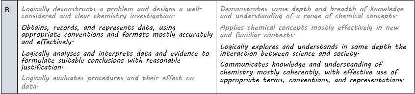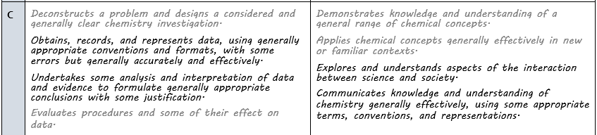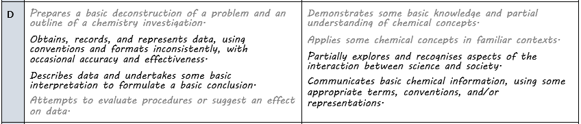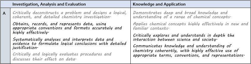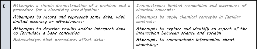 Science - Year 11: Chemistry - Organic Chemistry SHE: Assessment Rubric